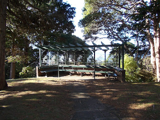 Ένα περίπτερο με παγκάκια, πάνω σε ένα από τα λοφάκια στους Βοτανικούς...