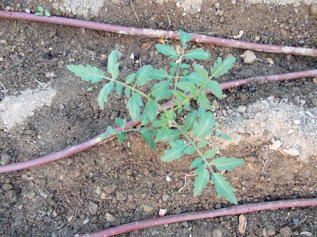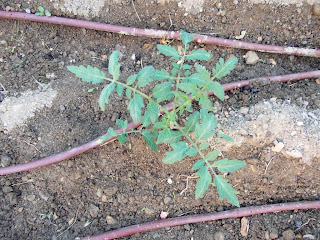 Φυσικά, αφού περάσαμε αυτοσχέδιο σύστημα ποτίσματος με σταγόνα ωστε να μην ξοδεύεται το πολύτιμο νερό, τα πρώτα φυτά που βάλαμε στο μποστάνι, ήταν ντοματιές υβρίδια και Ιταλικά τοματίνια ...Μεγάλωσαν και άνθησαν, αλλά ακόμα δεν έχω κάνει το κορφολόγημα (το οποίο πρέπει να γίνει εντός των ημερών, για να ψηλώσουν και να καρπίσουν τα φυτά), αλλά τα τοματίνια έχουν πάρει ήδη μπρος, μιας και ο καιρός είναι ιδανικός!