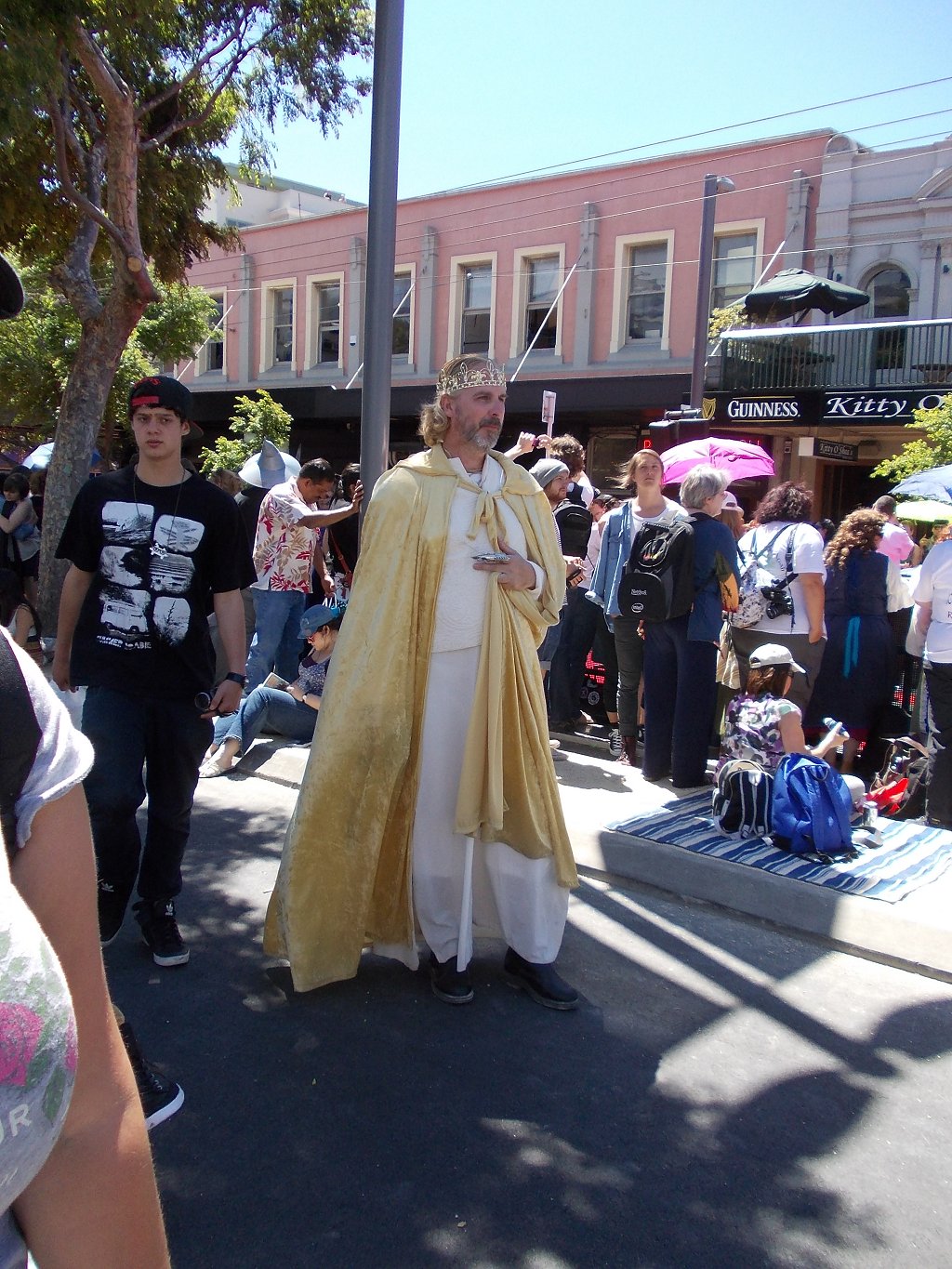 Τα Χόμπιτ φυσικά, είχαν την τιμητική τους...Κάνανε πολλά χιλιόμετρα χθες, πάνω κάτω στο δρόμο, μιλούσαν με τον κόσμο, βγήκαν άπειρες φωτό, ήταν φιλικοί και γελαστοί, και ντυμένοι με ωραίες χρωματιστές στολές -και φυσικά, ξυπόλητοι (στην καυτή άσφαλτο!)