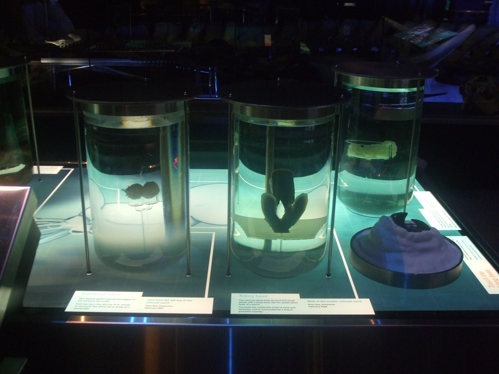 Το γιγάντιο καλαμάρι που ψαρεύτηκε το Φεβρουάριο του 2007 στις θάλασσες της Ανταρκτικής, από ΝΖηλανδικό ψαράδικο, και δωρήθηκε στο μουσείο...Για περισσότερες πληροφορίες, κοιτάξτε εδώ